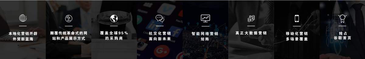 外貿快車(chē)是基于大數據和云計算的智能網(wǎng)絡(luò )營(yíng)銷(xiāo)系統平臺。獨創(chuàng )五大功能系統,幫助外貿企業(yè)智能創(chuàng )建多語(yǔ)種營(yíng)銷(xiāo)型網(wǎng)站和先進(jìn)的VR展示網(wǎng)站,通過(guò)采購商數據挖掘,以及SEO、SNS等多渠道網(wǎng)絡(luò )營(yíng)銷(xiāo),實(shí)現全球推廣和新興市場(chǎng)開(kāi)發(fā)。